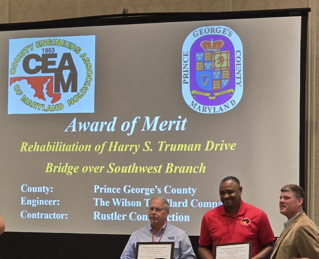 The Harry S. Truman Drive over Southwest Branch bridge project, WTB designed for the Prince George’s County DPW&T, was given the County Engineers Association of Maryland Award of Merit.